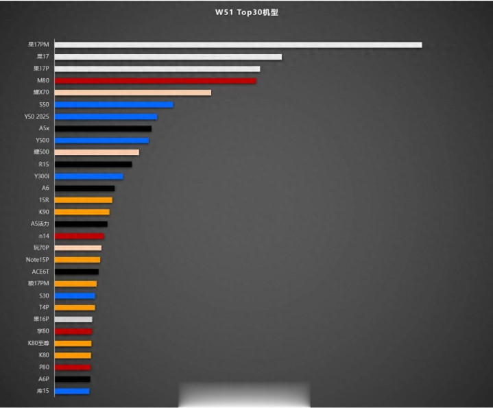 总的来看,前30名里只有8款旗舰机上榜,这说明整个大盘还是靠中低端机型在走量,但高端市场的利润才是厂商活下去的根本。
