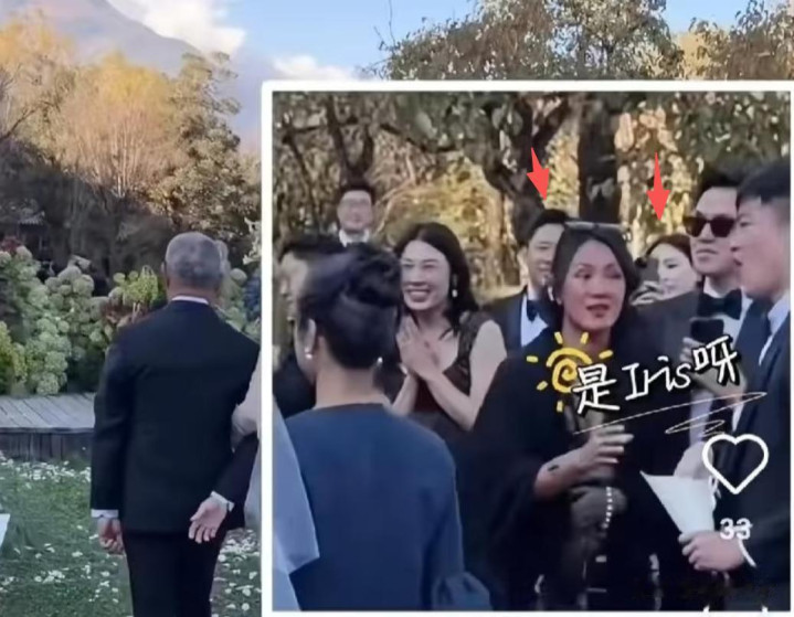第二个画面是婚礼现场,霍启山与娜然在现场观礼,两人站在一起亲密交谈,画面周围都是霍家的家人,而非女方的朋友,所以娜然不可能是因为女方的关系参加婚礼。此前有讨论称娜然和新娘子都有模特经历,两个人可能是好友。