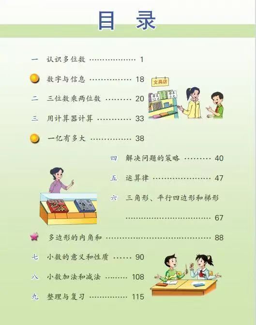 2026年春学期苏教版四年级下册数学教材的目录如下: