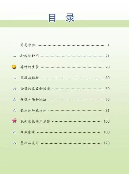 2026年春学期苏教版五年级下册数学教材的目录如下: